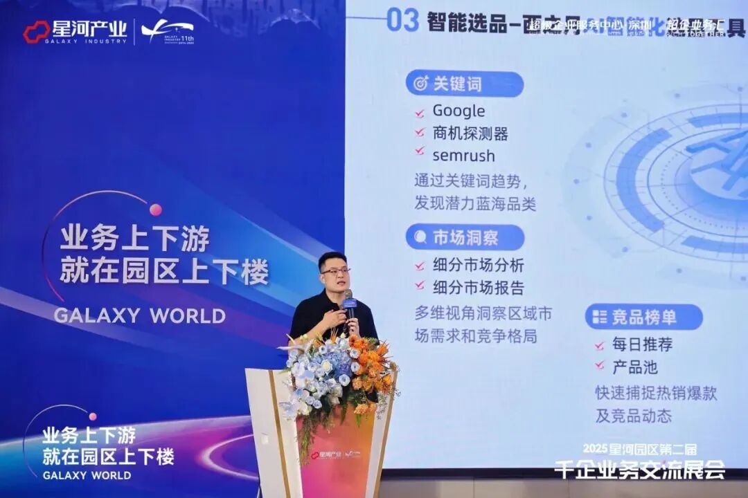 当企业遇到供应链断链、人才短缺等突发问题,园区可快速联动资源库,为企业提供解决方案;针对跨园区企业,打通全国资源通道,实现“一园入驻,全国联动”。以星河·昆山科创总部园为例,依托长三角协同创新中心,整合全国产业资源为企业提供产业链精准对接、低空经济与跨境资源匹配服务,让企业突破地域限制,快速布局新市场。如2025星河园区第二届千企业务交流展会,深圳·星河WORLD汇聚1688&西之月、华为云、TikTok Shop、德勤中国、Wildberries等多家头部企业,吸引超8000人次行业精英观展,全国372家企业参展,在星河第一服务员团队的精心组织和热情服务下,众多企业现场达成合作,实现互利共赢的良好局面。