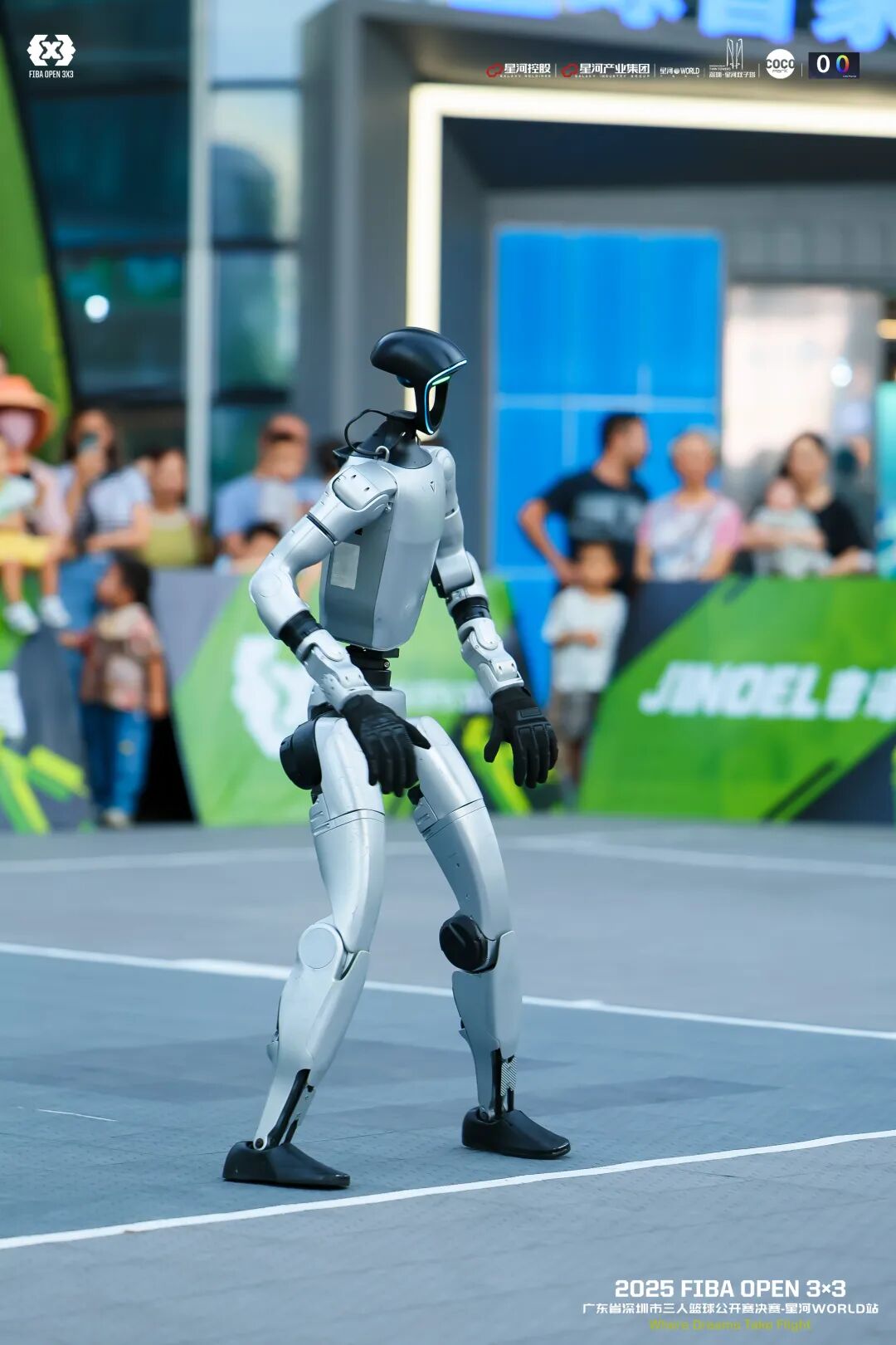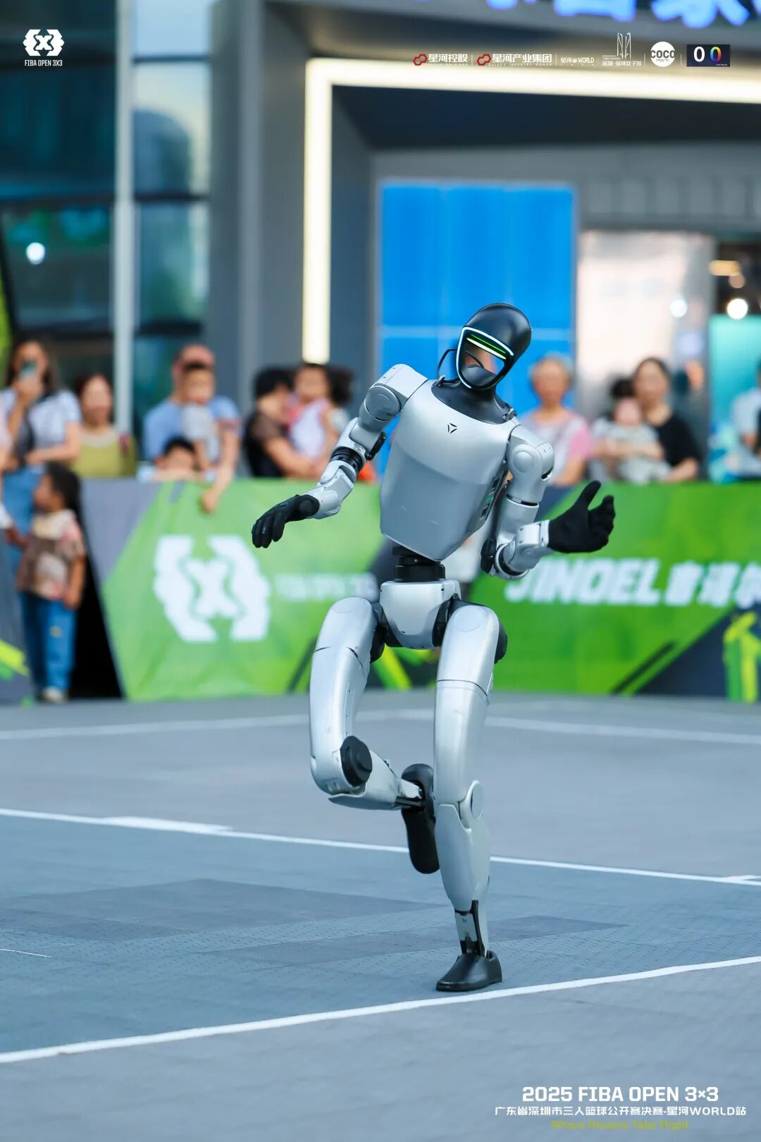 赛事未启,热情已燃。在动感音乐中,来自全球首家机器人6S店,未来时代机器人带来了一段科技感十足的机械舞表演。精准的动作编排,瞬间成为全场焦点,小朋友们向机器人“打招呼”,科技感与趣味性拉满,也为这场赛事注入了独特的龙岗AI产业色彩。