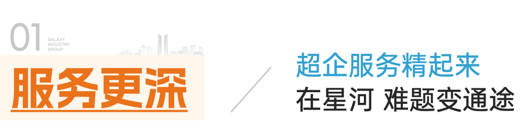 企业的痛点,就是服务的焦点。星河产城以“第一服务员”理念,构建覆盖432项服务的“超企服务”体系,从基础事务办理升级为全场景定制化解决方案,把企业发展中的“堵点、难点”一一打通。